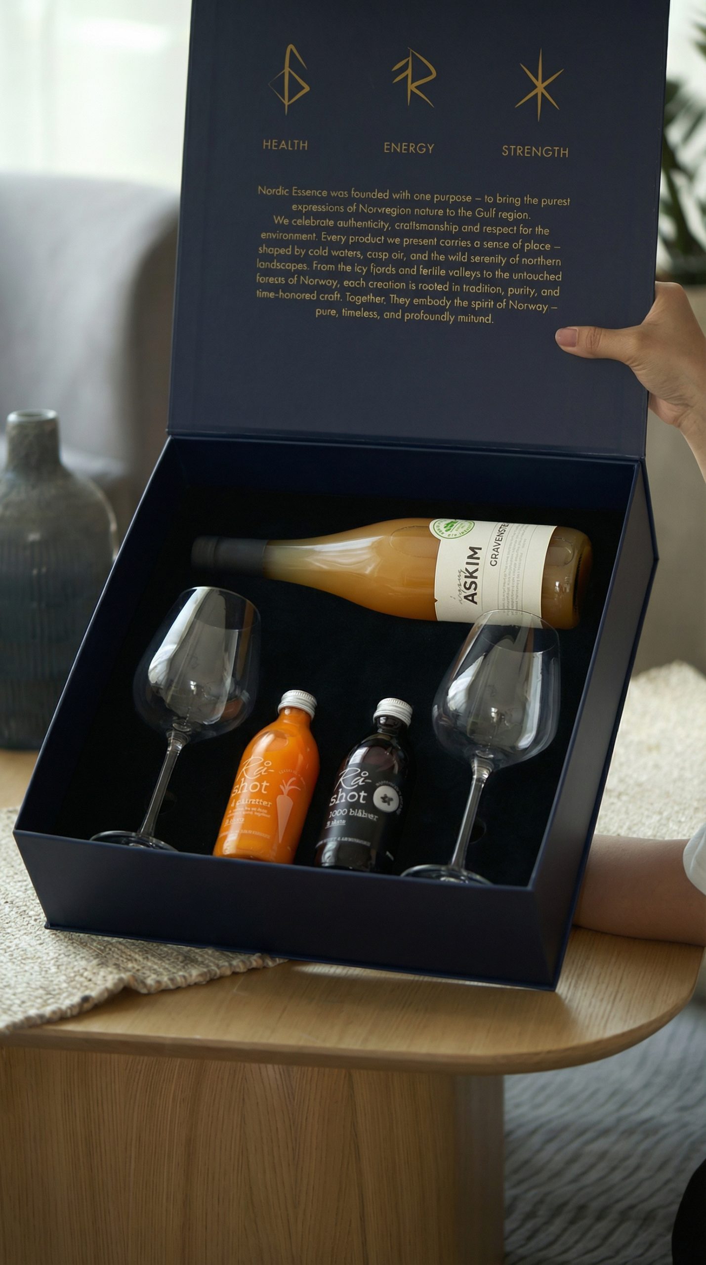 Inspired by Norway’s pristine fjords, this gift set brings together crisp vintage apple juice and raw shots, designed for moments of balance and celebration.